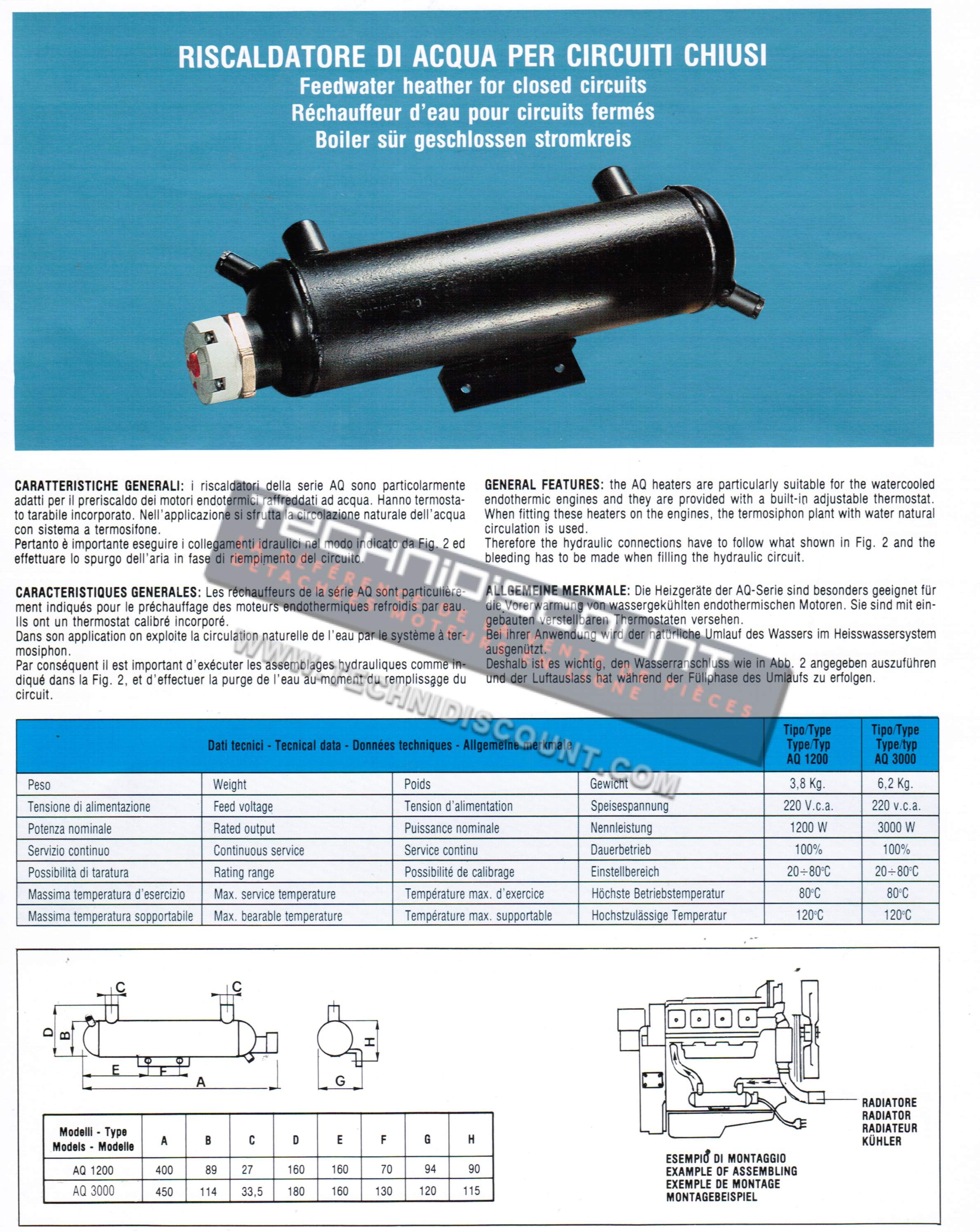 Les réchauffeurs de la série AQ / RA sont particulirement indiqués pour le préchauffage des moteurs endothermiques refroidis par eau.